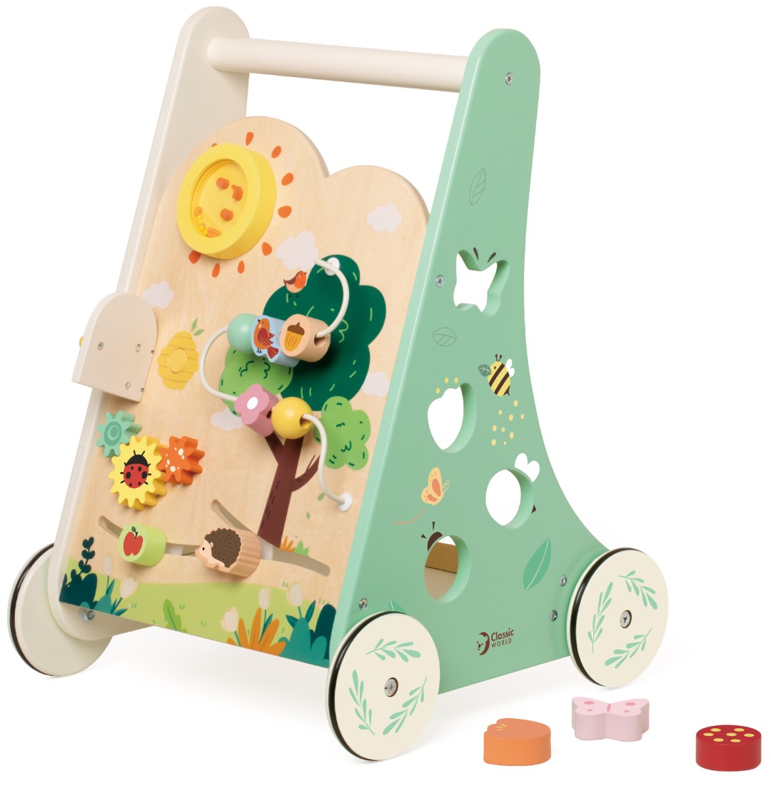 - Leg og læring: Indarbejd lærende elementer som bogstaver, tal eller simpel puslespil på gåvognen.